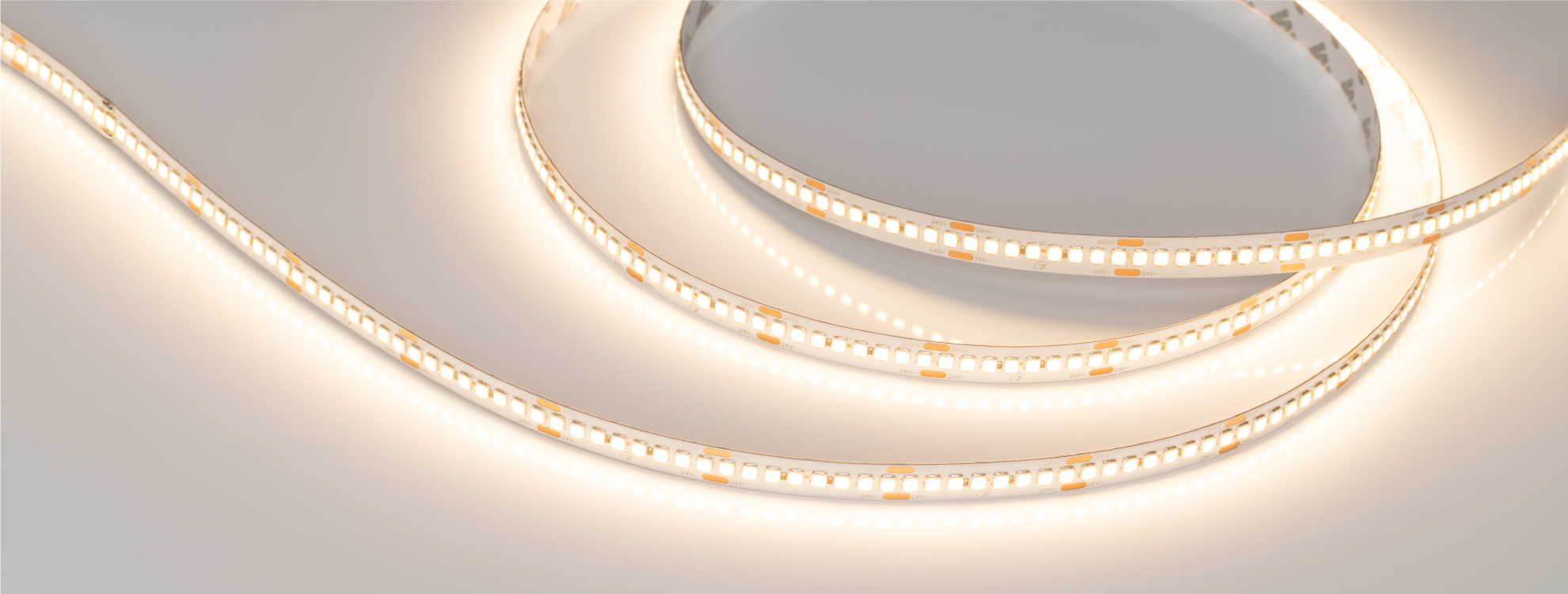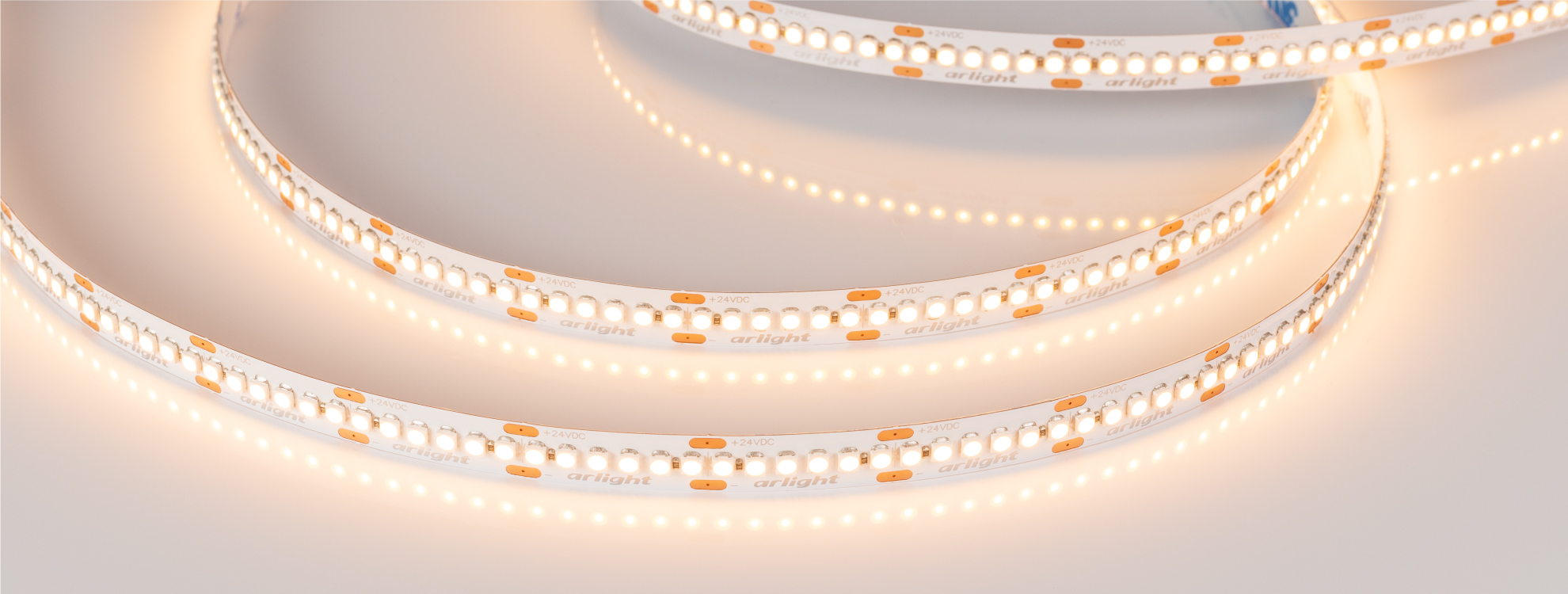 Светодиодные ленты RT A240 отличают высокая световая эффективность (150 лм/Вт) и равномерное свечение, что делает данные ленты универсальным решением для подсветки и освещения поверхностей, обладающих большой площадью. Тип светодиодов — 2835/3528 (А).