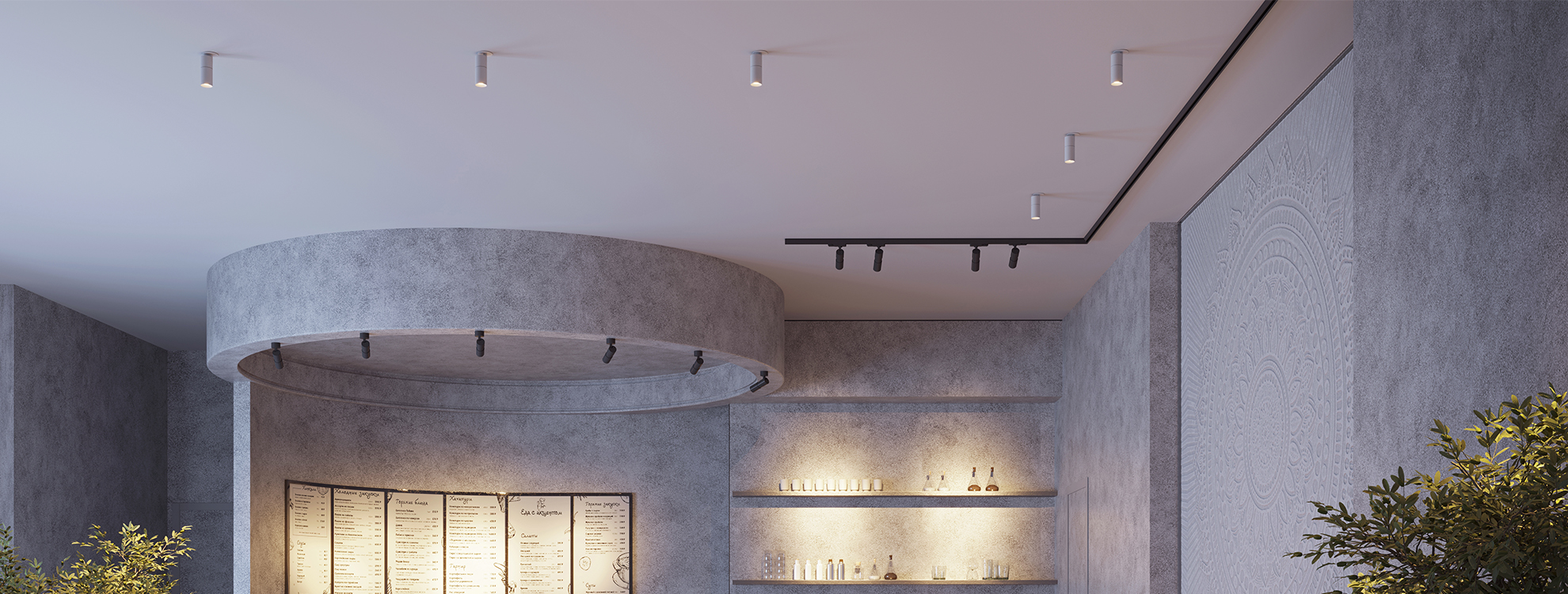 Есть 4 вида корпуса черного и белого цветов: трековый (для трехфазных треков), накладной поворотный, встраиваемый поворотный и подвесной.