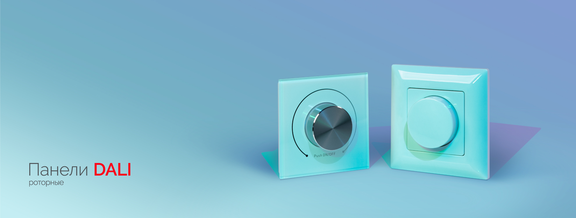Встраиваемые панели с вращающимся регулятором, работающие по стандарту DALI, предназначены для управления светодиодными лентами, светильниками и другими источниками света, использующими стандартный цифровой интерфейс DALI. Устройства позволяют включать, выключать свет и регулировать яркость или оттенок света.