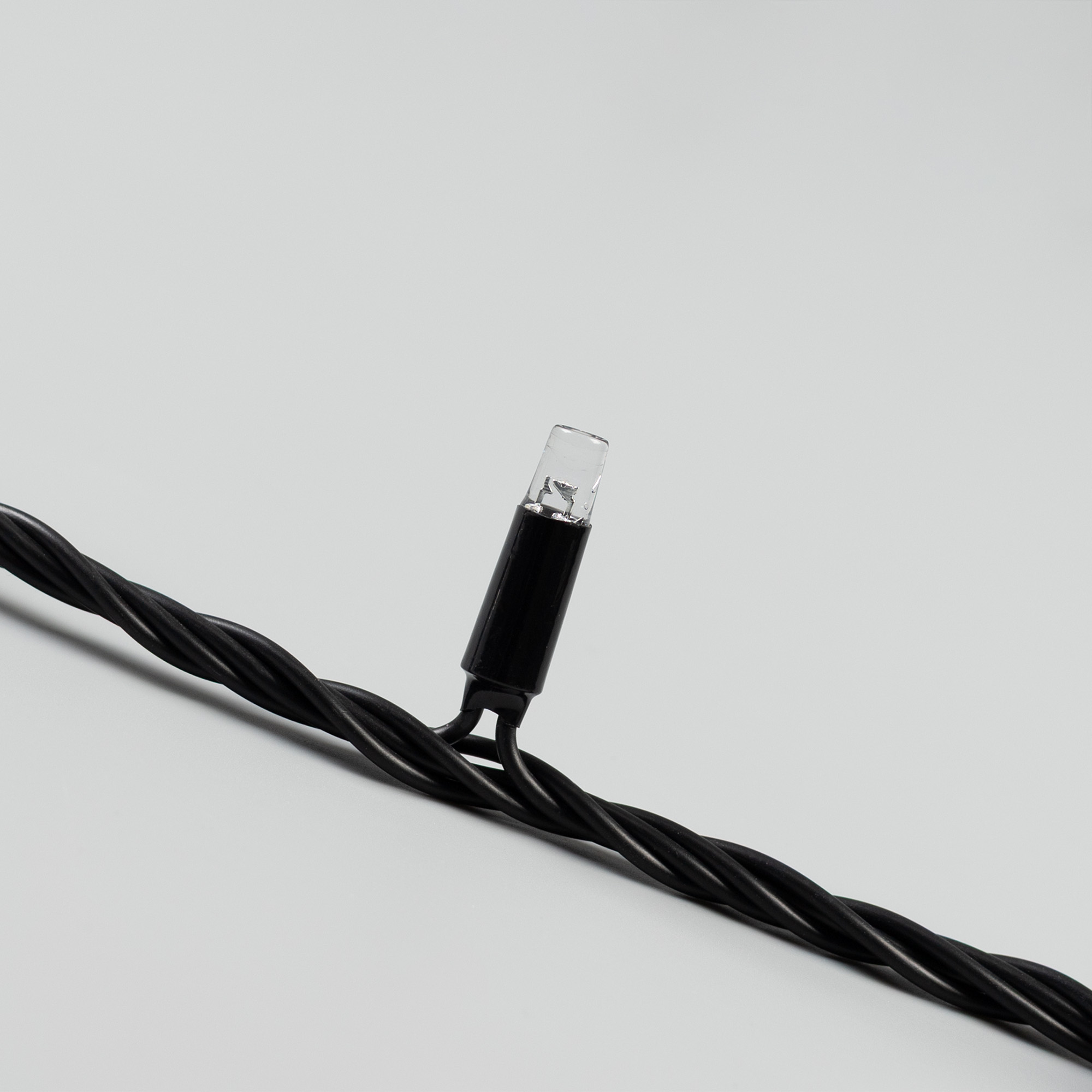 Универсальная светодиодная гирлянда "НИТЬ" серии Classic, предназначенная для декорирования и создания праздничного настроения как внутри помещений, так и снаружи (степень пылевлагозащиты IP65 позволяет размещать гирлянду на улице под навесом). Имея длину 10000 мм, она может использоваться для оформления средних и больших площадей. Универсальные соединительные разъемы позволяют наращивать длину до 50 м без использования дополнительных аксессуаров. Прозрачная вогнутая линза и эффект медленного мерцания каждого светодиода обеспечивают яркое, динамичное освещение, выделяя украшаемые объекты. Тёплый белый свет помогает создать необходимую атмосферу для декоративного объекта. Провод изготовлен из ПВХ и окрашен в чёрный цвет. Аксессуары для подключения гирлянды к сети и управления приобретаются отдельно.