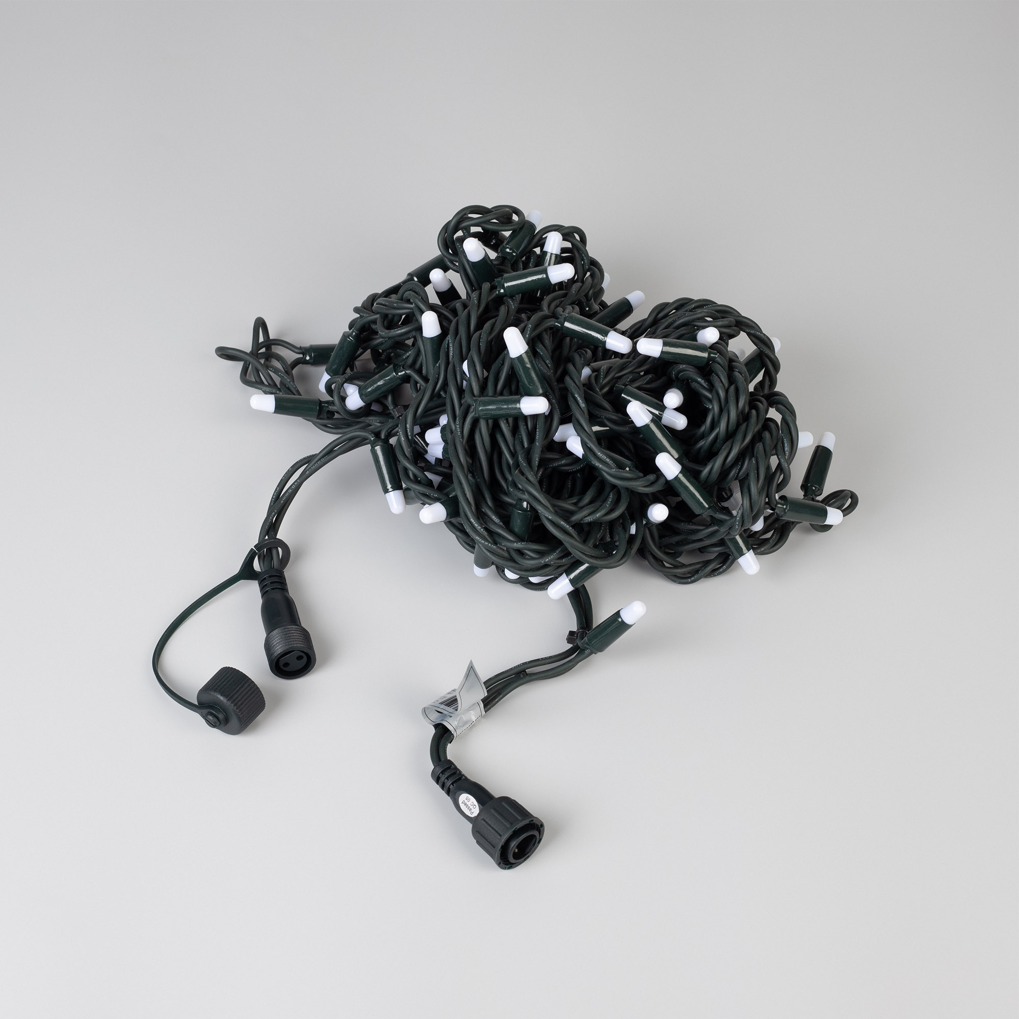 Универсальная светодиодная гирлянда "НИТЬ" серии Pro, предназначенная для декорирования и создания праздничного настроения как внутри помещений, так и снаружи (степень пылевлагозащиты IP65 позволяет размещать гирлянду на улице под навесом). Имея длину 10000 мм, она может использоваться для оформления средних и больших площадей. Универсальные соединительные разъемы позволяют наращивать длину до 50 м без использования дополнительных аксессуаров. Выпуклая молочно-белая линза и эффект медленного мерцания каждого светодиода обеспечивают мягкое, динамичное и равномерное освещение украшаемых объектов. Холодный белый свет помогает создать необходимую атмосферу для декоративного объекта. Провод изготовлен из каучука и окрашен в темно-зеленый цвет. Аксессуары для подключения и управления приобретаются отдельно.