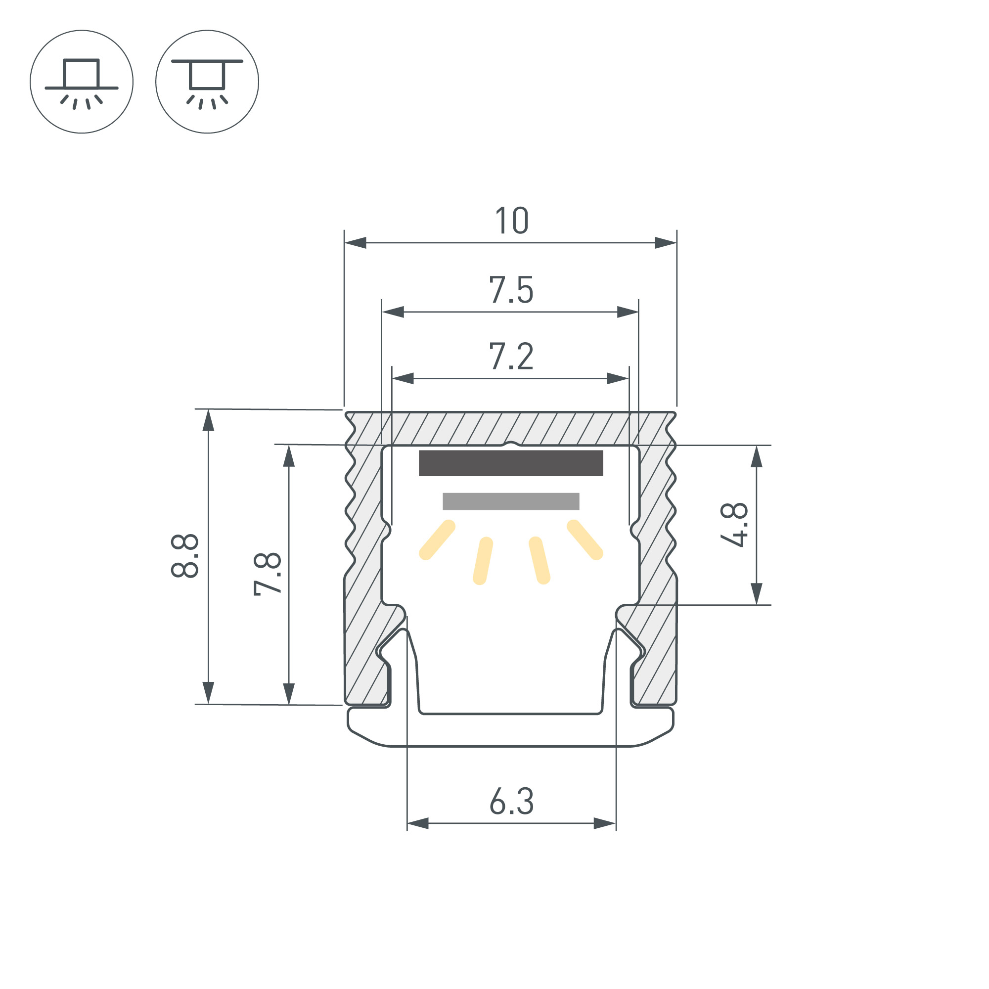 Накладной микро-профиль из анодированного алюминия для подсветки мебели, пазов, ниш и других элементов интерьера. Габаритные размеры профиля составляют 2000 мм в длину, 10 мм в ширину и 8,8 мм в высоту. Площадка для установки светодиодных лент позволяет использовать ленту шириной до 7,5 мм и мощностью до 10 Вт/м. Это обеспечивает гибкость в выборе светодиодных лент и создает потрясающие световые решения. Экран, заглушки и другие аксессуары не включены в комплект и приобретаются отдельно. Цена указана за 1 метр профиля. Отличное решение для создания современных световых проектов.