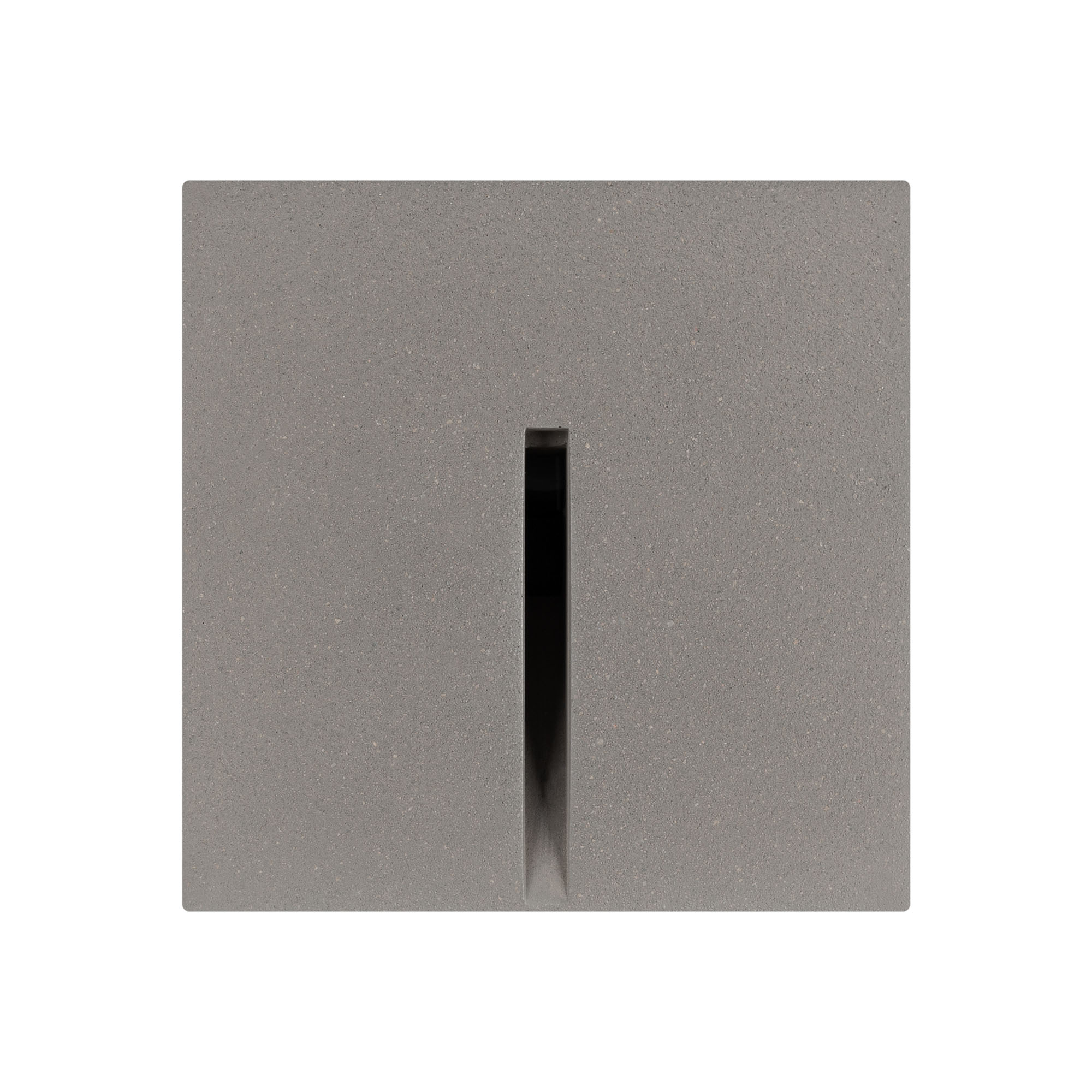 Светодиодный встраиваемый квадратный светильник для стен, лестниц. Мощность 3Вт, световой поток 32 лм, теплый 3000К, угол 25x45°, CRI>80, напряжение 230 В. Квадратный корпус из бетона серого цвета и алюминия. Степень защиты IP65. Питание AC230V, мощность 3Вт. Размеры LхWхH 100х100x76 мм. Драйвер встроенный, пульсация <0.5%.