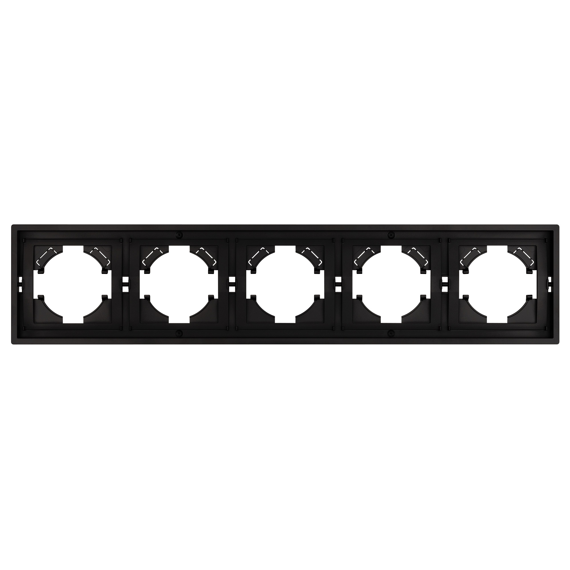 Рамка пластиковая на 5 постов, под встраиваемый механизм. Цвет - черный. Среднего уровня герметичности IP20. Ориентация монтажа горизонтальная. Габаритные размеры: длина 364 мм, ширина 80 мм, высота 9 мм. Гарантийный срок 12 мес.