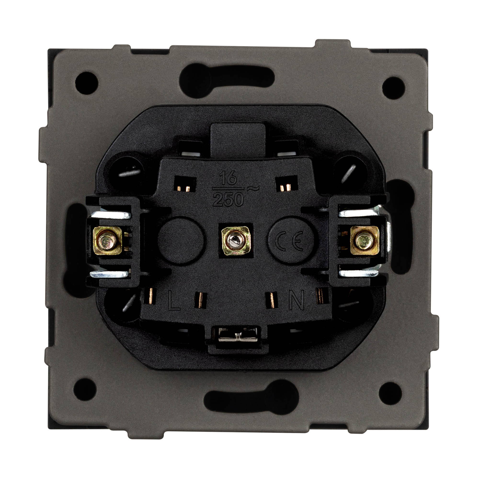 Механизм розетки с заземлением и влагозащитной крышкой на 1 пост. Цвет - серый, с Soft-Touch покрытием. Без фронтальной рамки. Уровень пылевлагозащиты IP44. Розетка устанавливается в стандартный подрозетник круглого сечения диаметром 60мм. Габаритные размеры: длина 71 мм, ширина 71 мм, высота 52 мм. Гарантийный срок 10 лет.
