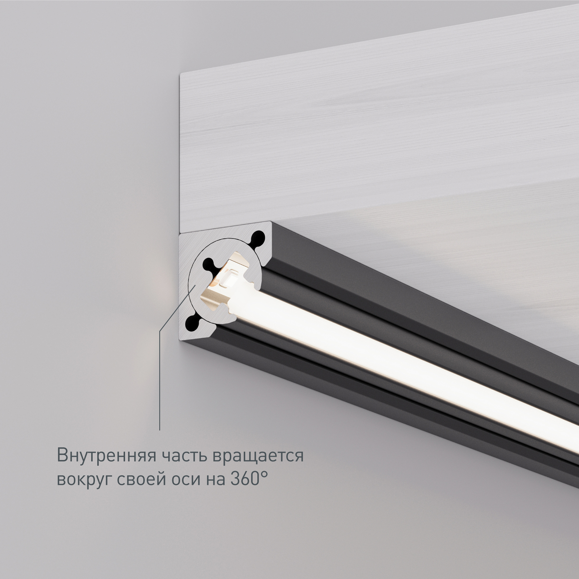 Комплект с экраном. Двухкомпонентный алюминиевый профиль для светодиодных лент и линеек. Цвет - серый графит. Внутренняя часть вращается вокруг своей оси на 360 градусов. Габаритные размеры (L×W×H): 2000x10x10 мм. Ширина площадки для ленты 5,6 мм. В комплекте с матовым экраном. Цена за комплект. Заглушки и другие аксессуары приобретаются отдельно.