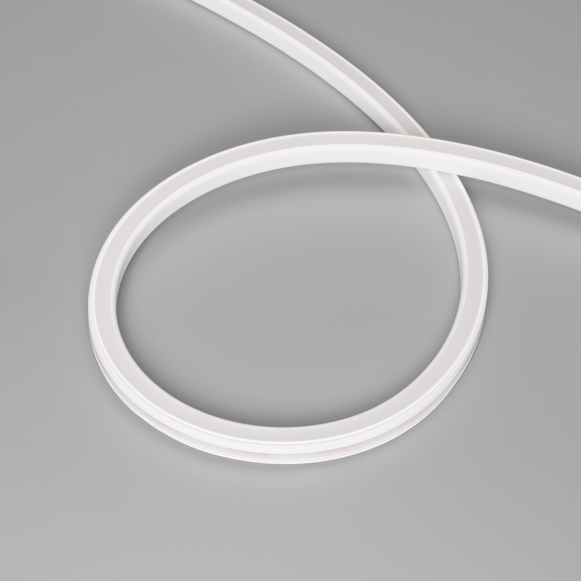 Гибкая герметичная лента (неон серии WAVE), сечение 16×15 мм. Светодиоды SMD2835 120 шт/м. Цвет свечения ТЕПЛЫЙ БЕЛЫЙ (3000 К), индекс цветопередачи CRI>90, световой поток 617 лм/м, угол излучения 292°. Мощность 15 Вт/м, питание 24 В. Класс пылевлагозащиты IP67. Размеры 5000×16×15 мм. Мин. отрезок 50 мм. Горизонтальный изгиб SIDE, свечение в две стороны, минимальный радиус изгиба 100 мм. Вывод кабеля с одной стороны перпендикулярно линии сечения неона. Катушка 5 м. Цена за 1 м. Гарантия 5 лет.