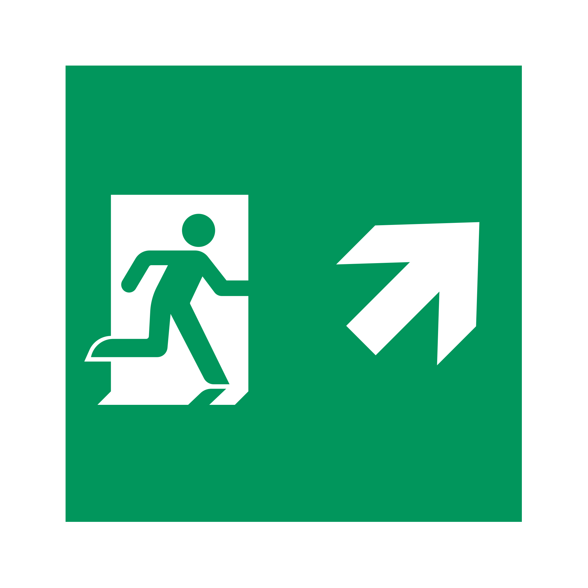 Пиктограмма "человек, стрелка вверх-вправо" для аварийных панелей серии EMG-MARK. Выполнена из пластика, вставляется в LGP панель аварийного указателя.
