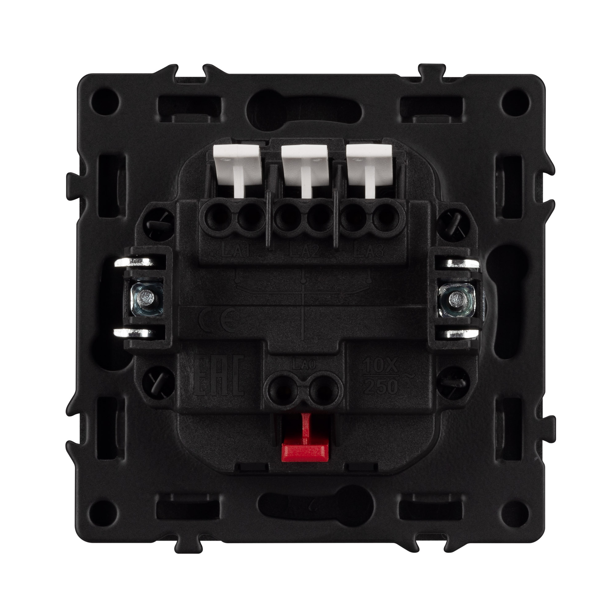 Соединение посредством быстрозажимных контактов, позволяет надежно подсоединить механизм выключателя к питающим элементам, минимизируя затраченное время на монтаж. А усиленные распорные лапки двойного захвата надежно фиксируют механизм в установочном подрозетнике круглого сечения диаметром 60мм.