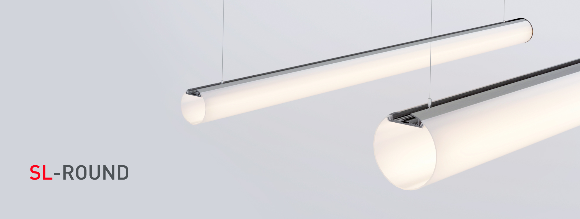 Создавайте круглые подвесные светильники вместе с профилями SL-ROUND. Большой выбор моделей позволяет создавать в интерьере светильники разного диаметра и длины. Возможно создание светильников со свечением 360°.