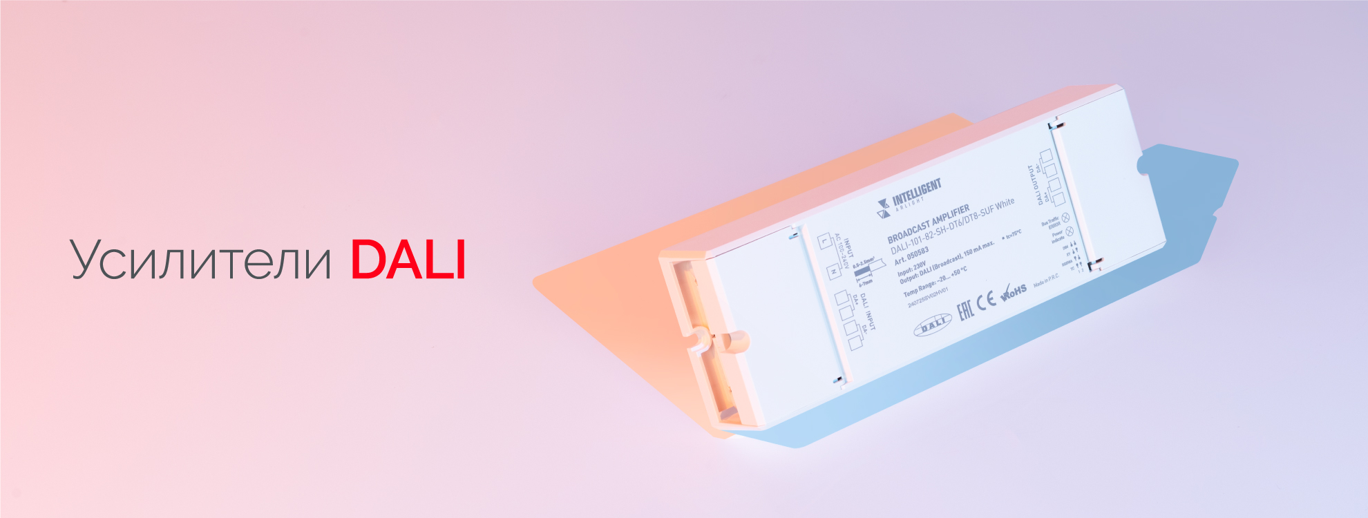 Усилители DALI служат для удлинения линии и для ретрансляции команд с основной линии DALI на дополнительную в виде широковещательных команд Broadcast. Это позволяет увеличить количество устройств, которые можно подключить к шине DALI.