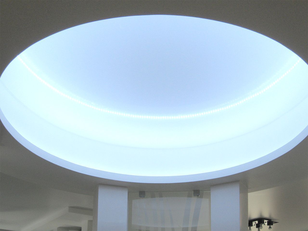 Светодиодная подсветка барной стойки с фальшкамином, подсветка потолочных ниш, а также стеклянных перегородок.