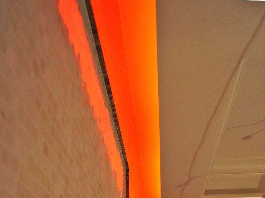 Светодиодное освещение было установлено в загородном доме, интерьер которого выполнен в классическом стиле. Декоративная контурная подсветка, установленная за полиуретановыми карнизами, придала внутренней обстановке дома сказочность и неповторимость.